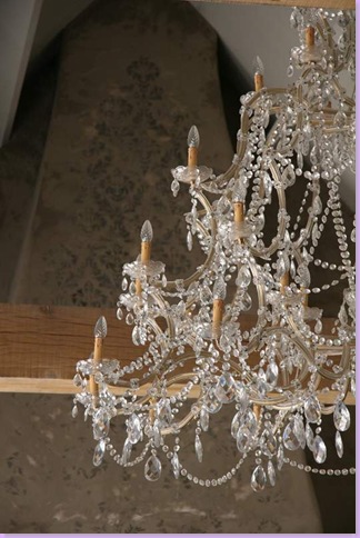 In Europe, a quiet, sedate room with a huge, over the top crystal chandelier. An iron or wood chandelier would have been the "safe: choice here, but instead the owners went for smashing!
