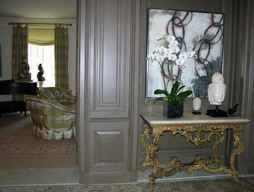 Published, the entry hall, all sunny creams again - wonderful artwork and antique console.